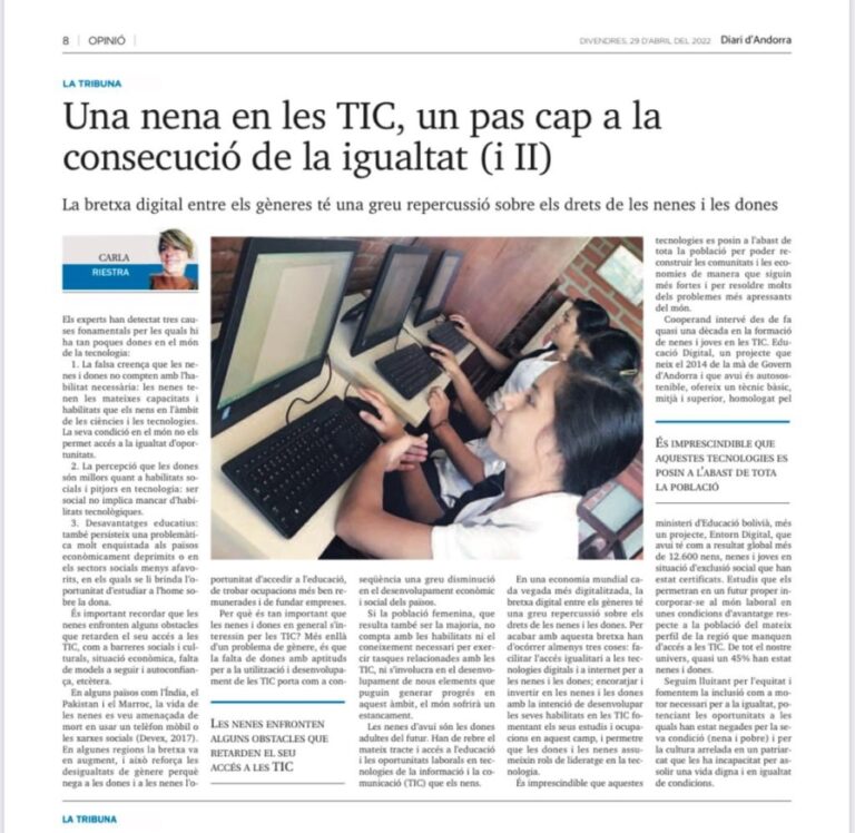 MAY 2022 Tenim el deure d’educar, en especial els infants, en la coeducació i la igualtat d’oportunitatsActualitzada 08/03/2022 a les 06:15 Carla Riestra Avui és un dia en què les entitats, escoles i institucions hem d’aprofitar més que mai per…