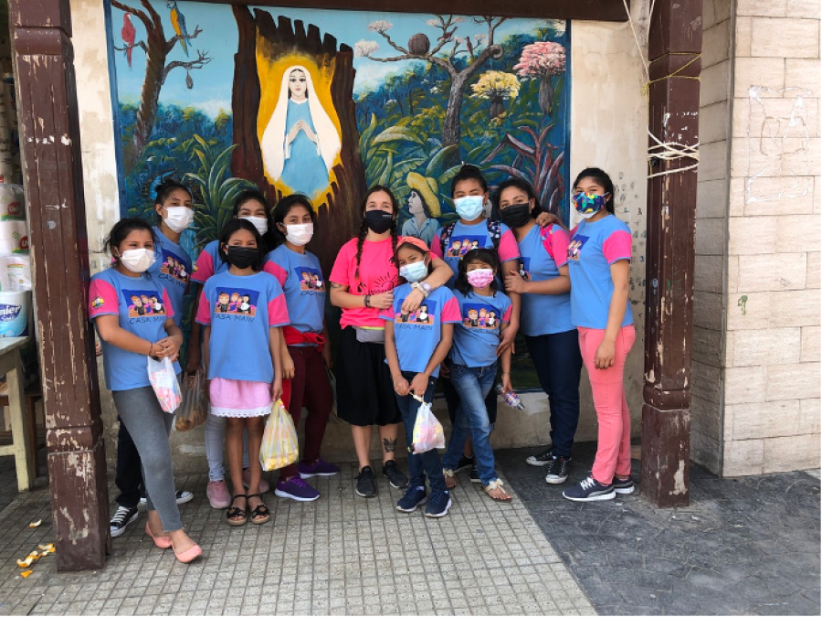 Recuerdo los primeros contactos con los niños del hogar, felices de volver a disfrutar de la experiencia junto a los voluntarios. Esas ganas de explicarnos como funciona todo, como es su hogar, los colores de su bandera, de hacernos observar los pájaros que cantan cada mañana con sus ojos brillantes, de orar por nosotras en agradecimiento por estar ahí de nuevo. Y es ahí donde empieza la aventura de acompañarlas en su pequeña rutina: levantarlas entre cosquillas, acompañarlas en su flojera de niña para hacer oficios, leerles y aconsejarlas en sus clases virtuales, recordarles la importancia de comer bien para estar fuertes, jugar un rato con ellas a mil juegos diferentes y desearles cada noche que descansen para emprender un día nuevo con su mejor sonrisa.