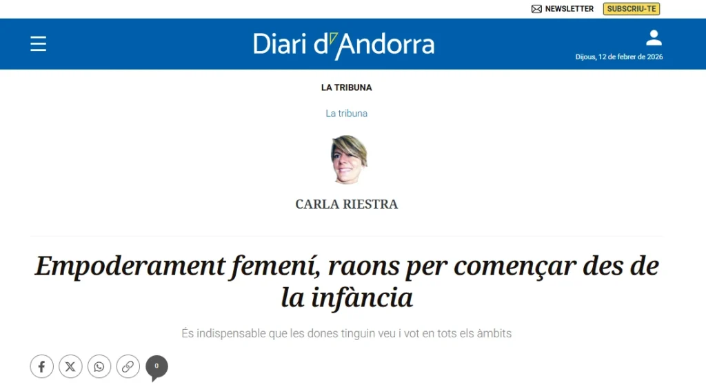 A Andorra, la nostra cadena solidària imparteix tallers sobre coeducació i igualtat a les escoles, seminaris sobre violència a joves i adolescents i promovem la igualtat d’oportunitats conscienciant i sensibilitzant nois i noies que demà seran el futur del nostre país. Seran metges, polítics, advocats, mestres, empresaris, periodistes… i, sobretot i el més important, seran pares i mares que tindran el deure moral d’educar els seus fills en la igualtat per aconseguir un món més pròsper, just i sostenible. És, per tant, de vital importància formar entre tot el nostre jovent.